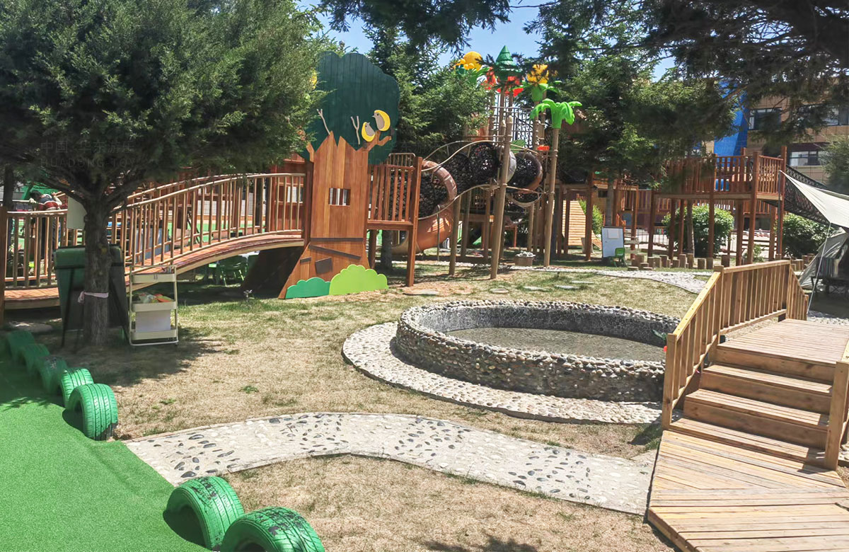 该幼儿园是一个专业性的学前教育培训机构,选用的是金年会游乐自主研发和设计的具有空中攀爬网、钻洞、空中栈道、游戏小屋、直行滑梯为一体的综合性 游乐设备,这些设备的选择不仅仅丰富了孩子们校园的生活,还很好的锻炼了小朋友的攀爬能力、四肢的协调能力、攀爬过程中的平衡能力,同时也促进了孩子们大小脑的发育。